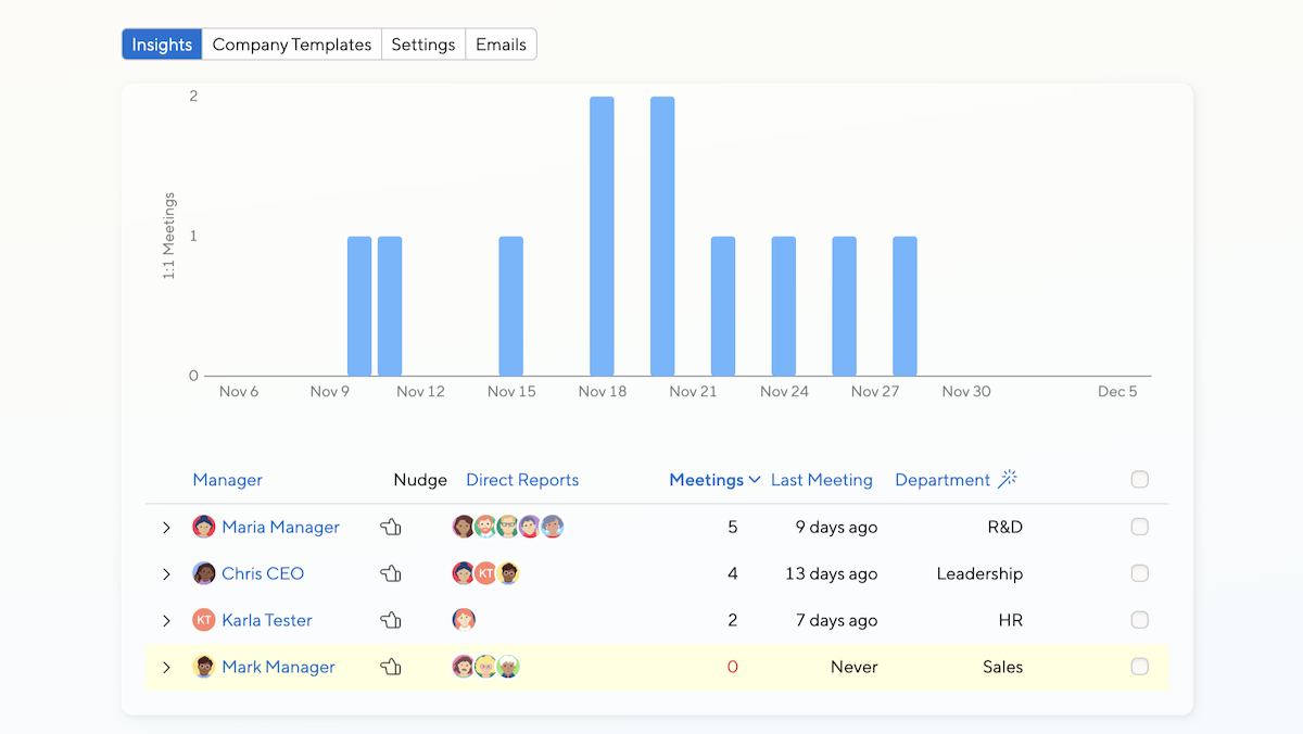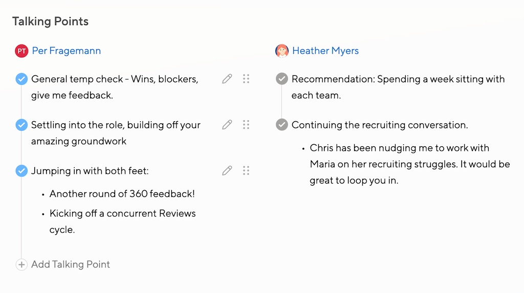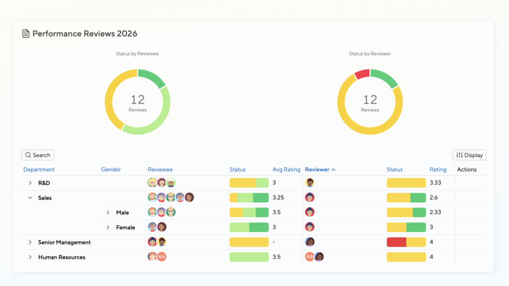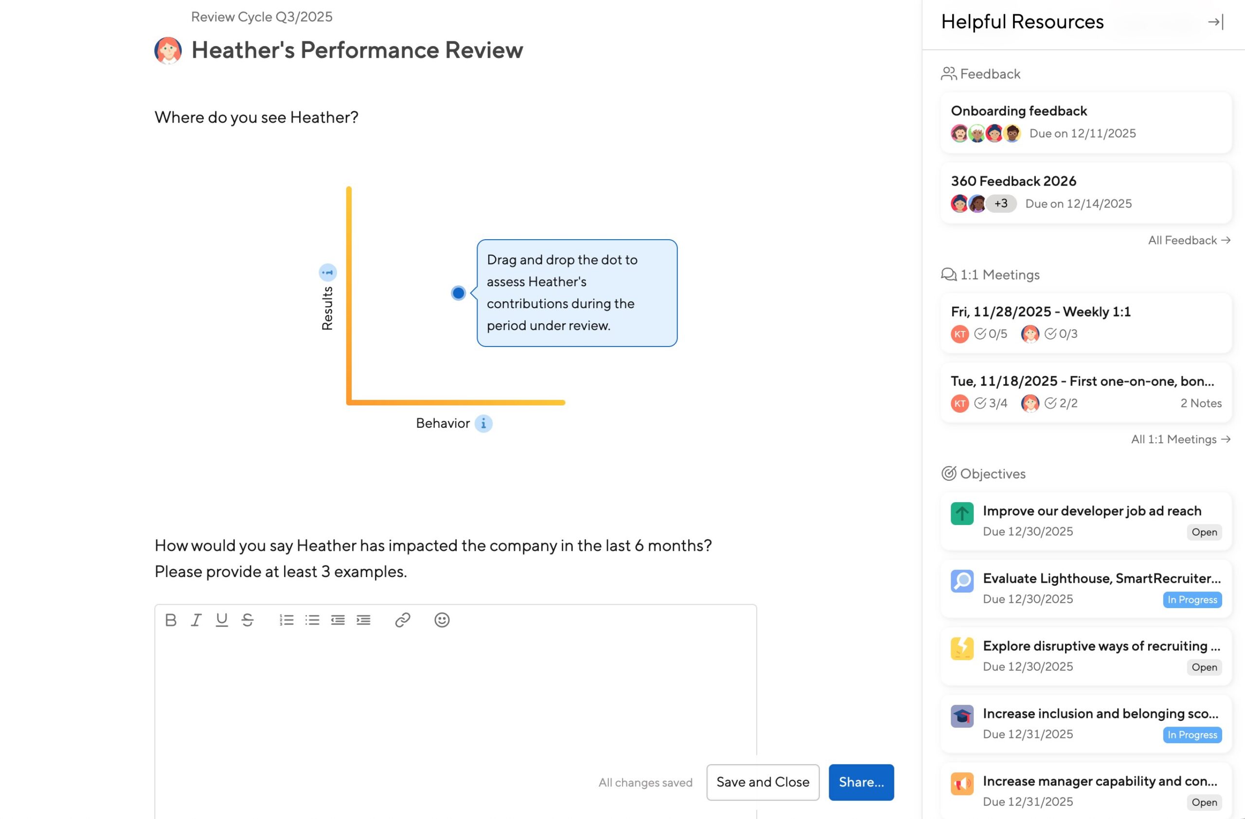 Reviews, Objectives, 1:1s, Pulse, 360s, Praise — all in one place.