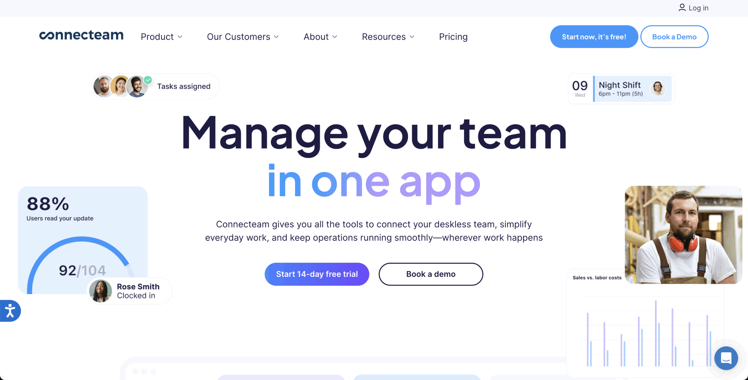 Connecteam is a mobile-first engagement suite built for on-the-go teams. It combines surveys, polls, chat, recognition, and training modules in one platform, helping managers connect with employees anywhere.