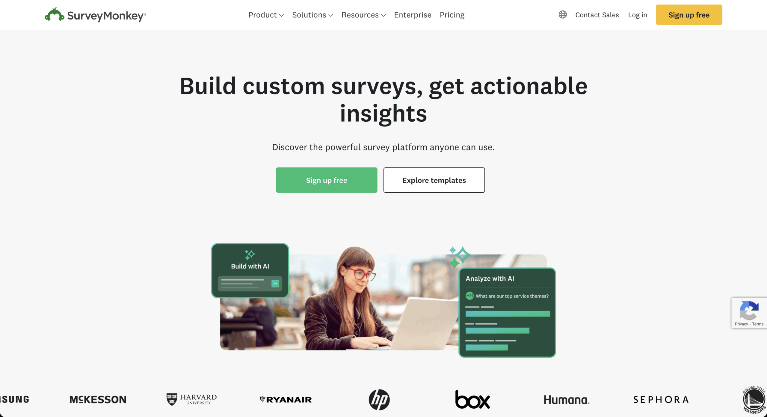 SurveyMonkey remains the most recognized survey platform for its flexibility and reliability. Its employee templates make it easy to build consistent engagement programs without heavy onboarding.