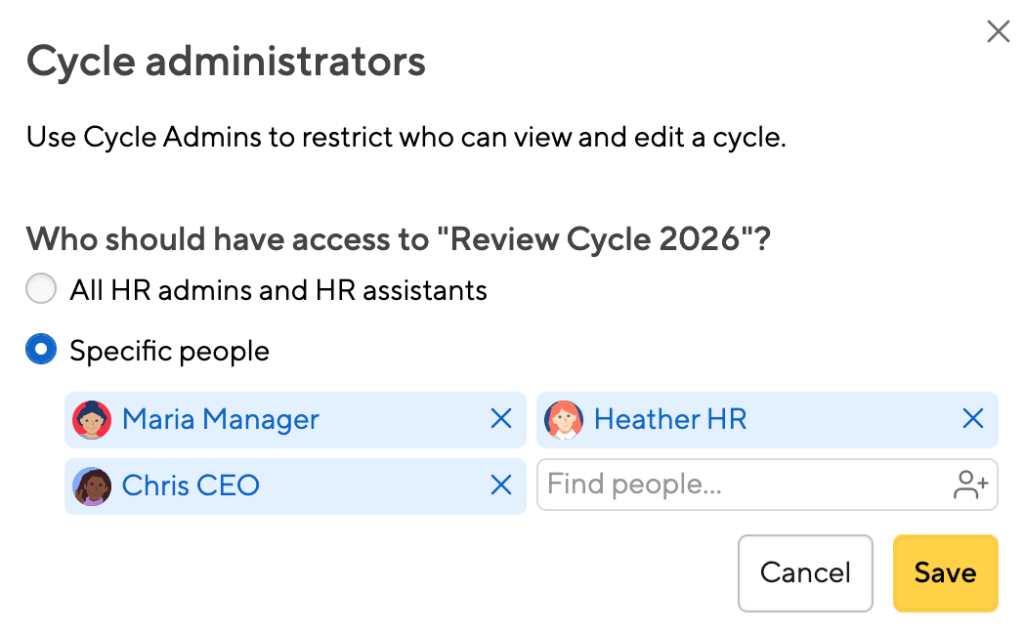 Running a Review Cycle is still work. Great if you can assign additional HR admins — either at the company level, or even just for one review cycle.