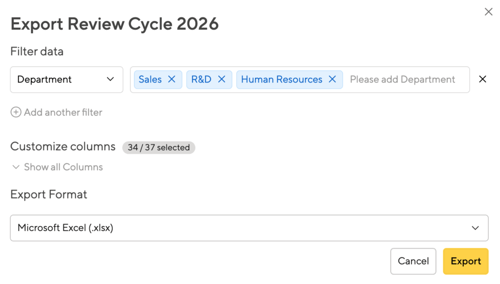 Sometimes you just need a spreadsheet for HR Business Partners to scribble onto, or to run your own more advanced calculations. You can export the whole cycle from our software, or just sections of it.