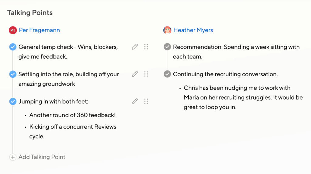 Small Improvements helps staff prepare, decide on action items, and take notes afterwards, all in one unified performance management system.